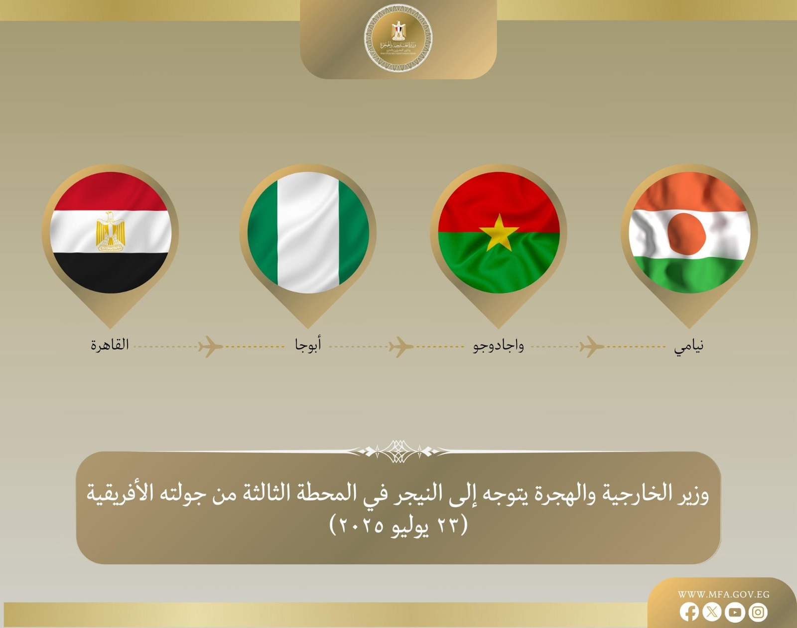 ووفقا لبيان الخارجية المصرية، فإن العاصمة النيجرية نيامي هي المحطة الثالثة في الجولة التي يقوم بها وزير الخارجية بدر عبد العاطي، والتي هدفها هو تعزيز التعاون الثنائي بين الجانبين وتكثيف التنسيق مع الدول الإفريقية الشقيقة.