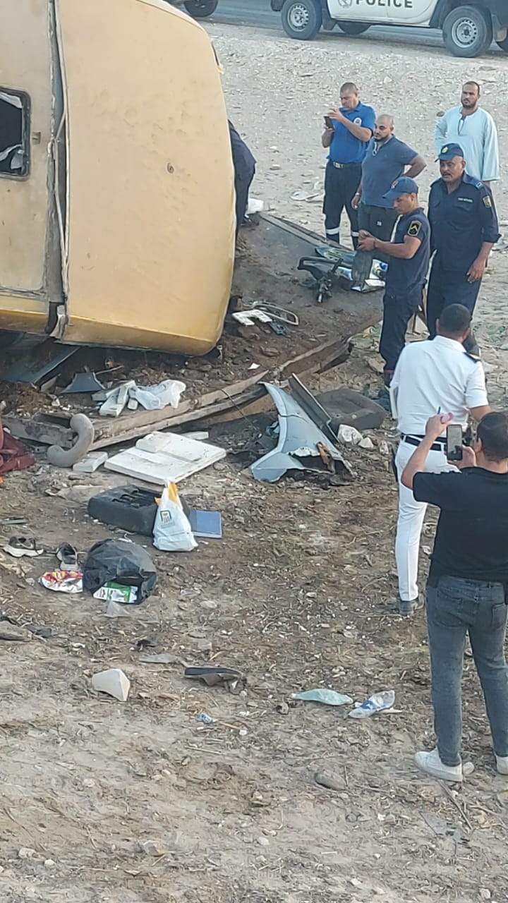 تفاصيل انقلاب أتوبيس على الطريق الصحراوي الغربي