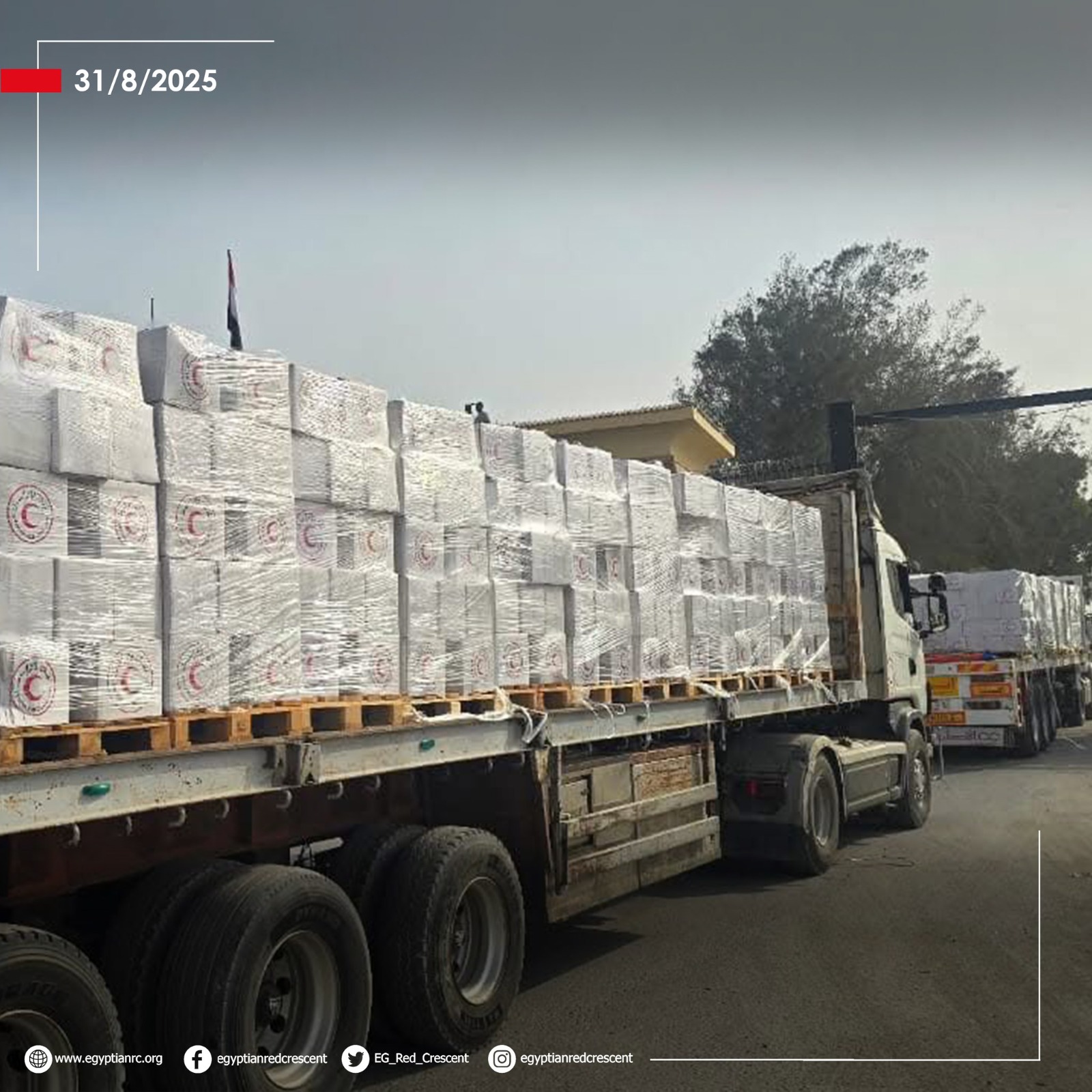 وتواصل القوافل الإغاثية المصرية عبورها إلى غزة عبر معبر كرم أبو سالم، حيث يعمل الهلال الأحمر المصري كآلية وطنية لتنسيق المساعدات، ولم يغلق المعبر من الجانب المصري على الرغم من التحديات التي تواجه المنطقة.