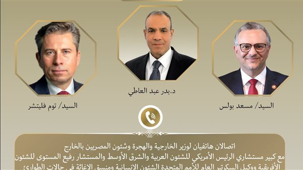 تلقى الدكتور بدر عبد العاطي، وزير الخارجية والهجرة وشئون المصريين بالخارج، اتصالين هاتفيين منفصلين من كل من مسعد بولس، كبير مستشاري الرئيس الأمريكي للشئون العربية والشرق الأوسط والمستشار رفيع المستوى للشئون الأفريقية، وتوم فليتشر، وكيل السكرتير العام للأمم المتحدة للشئون الإنسانية ومنسق الإغاثة في حالات الطوارئ، وذلك في إطار الجهود الدبلوماسية المصرية المكثفة لمتابعة تطورات الأوضاع الأمنية والميدانية والإنسانية الخطيرة في إقليم دارفور، وخاصة في مدينة الفاشر.